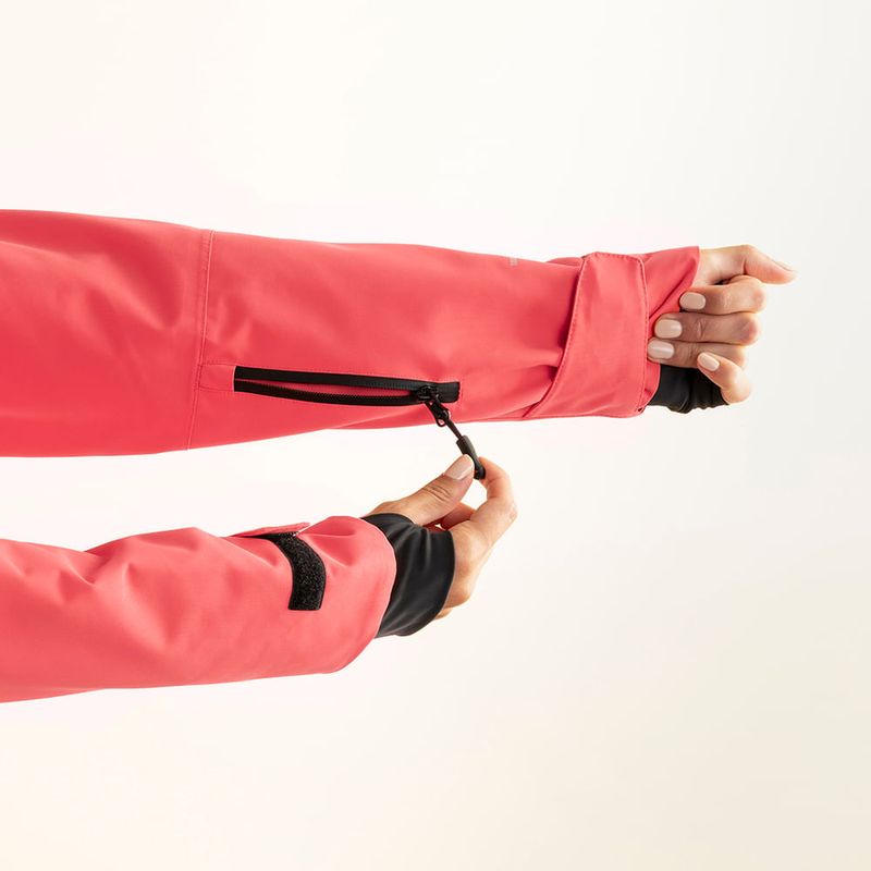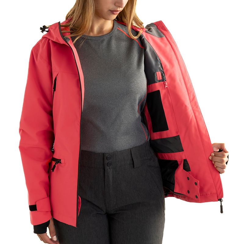 costuras termo selladas, cierre frontal waterproof y trampa de nieve, brindando una barrera total contra la humedad y el viento. La